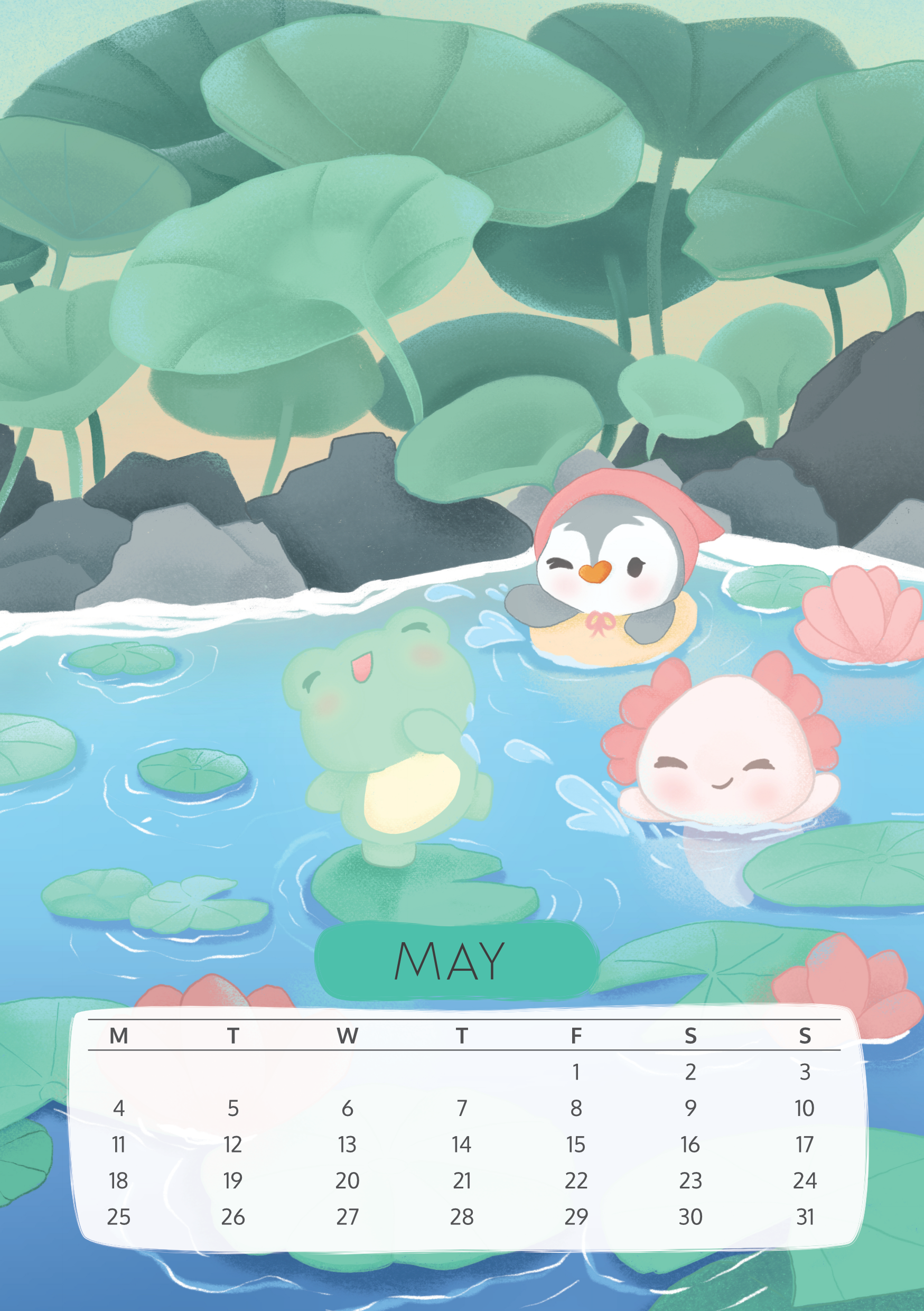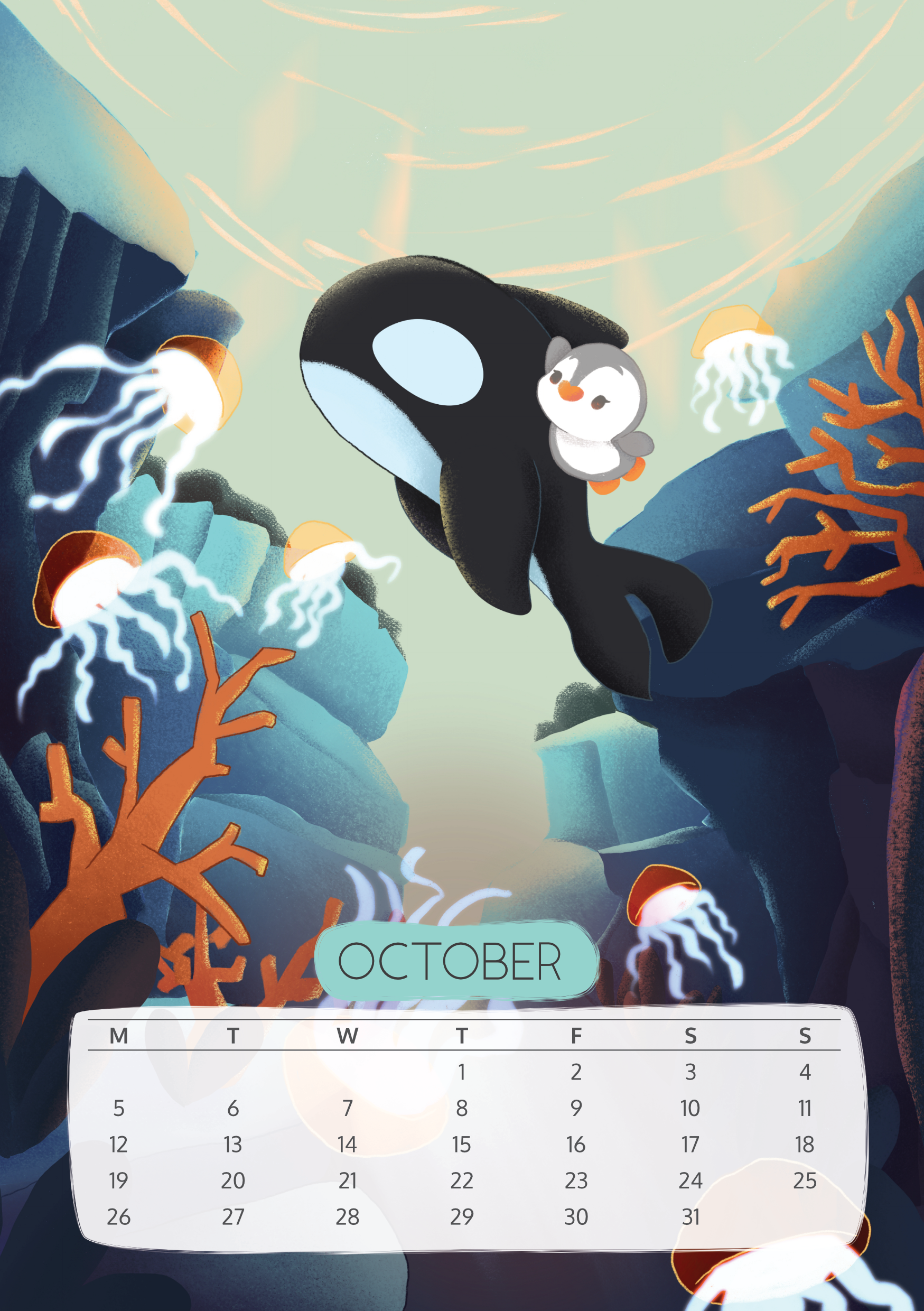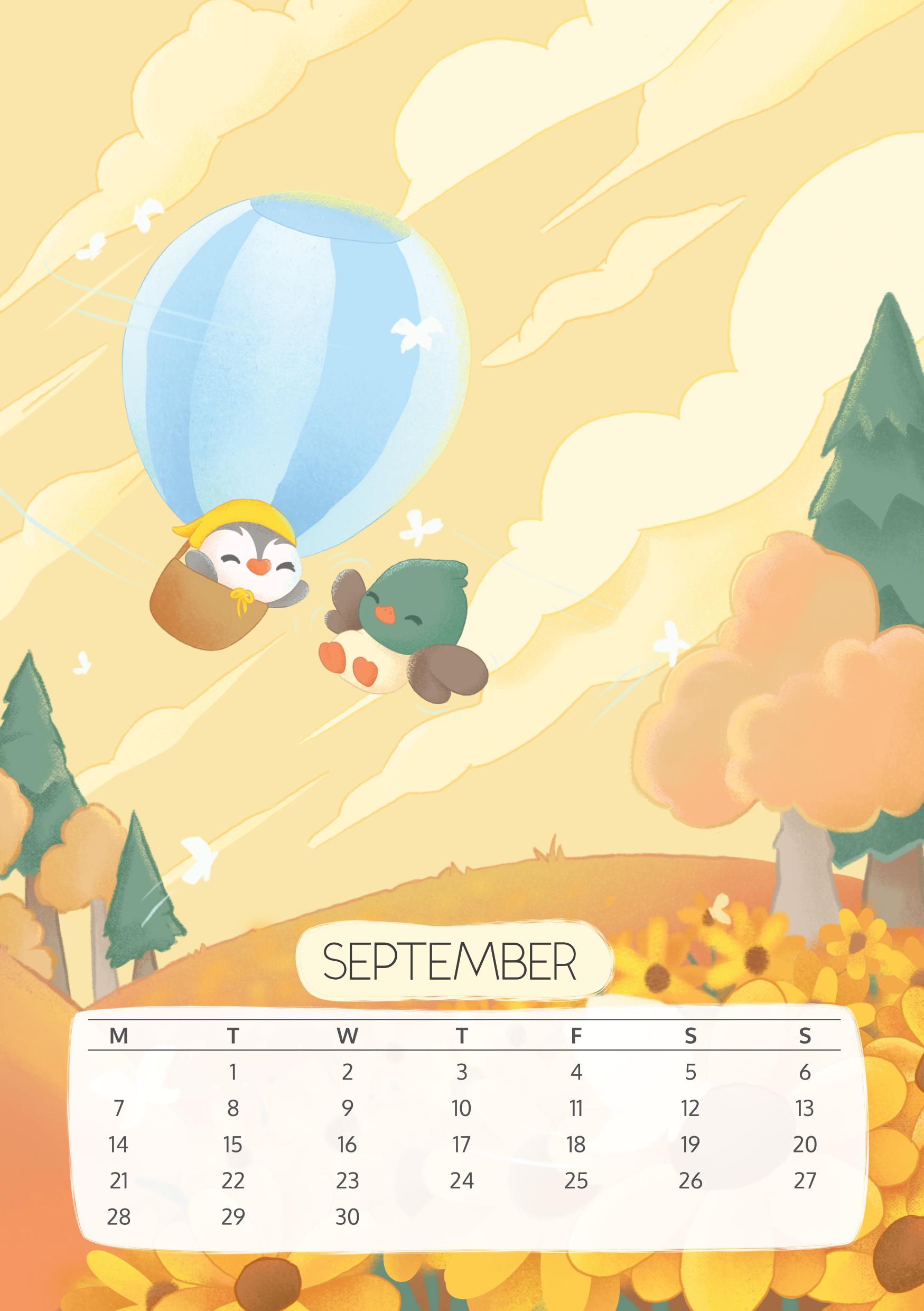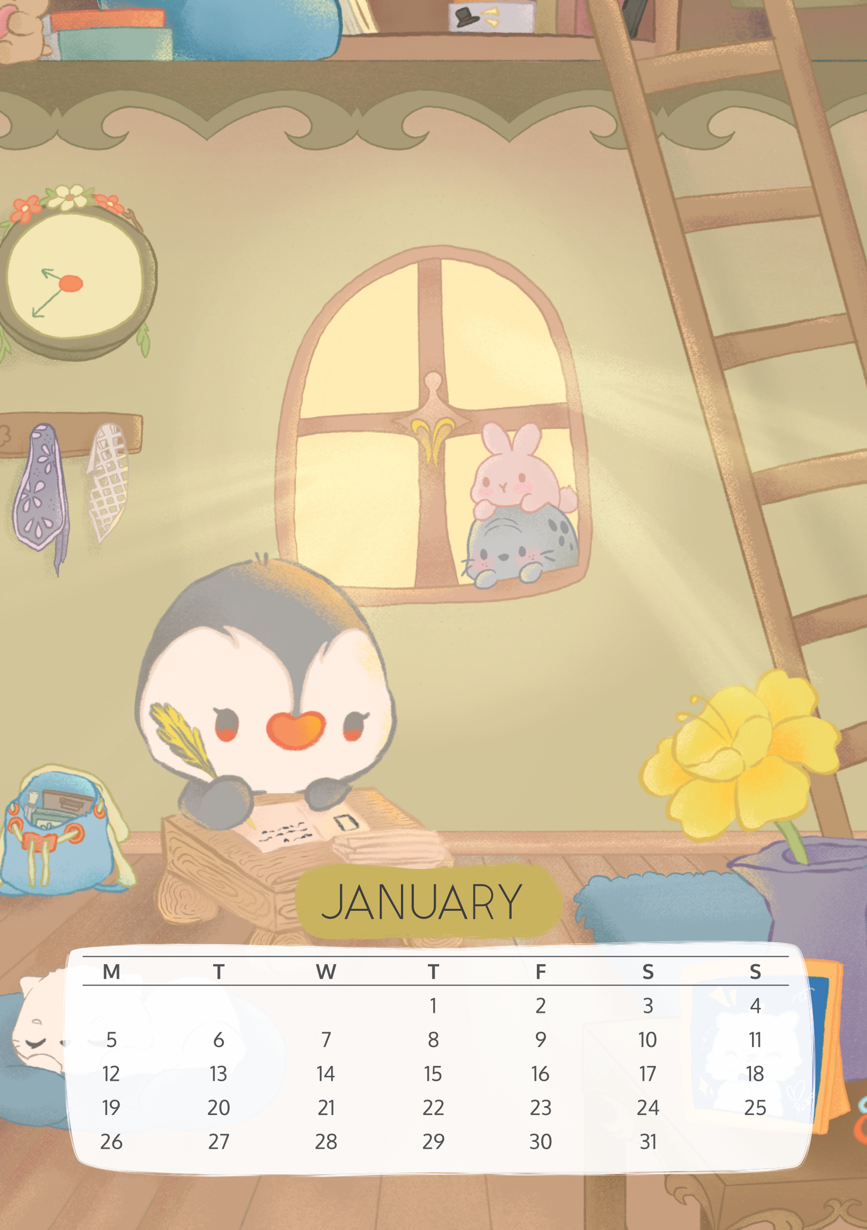 Characters designed, including Poppy the Penguin, that are featured in the 2026 Calendar