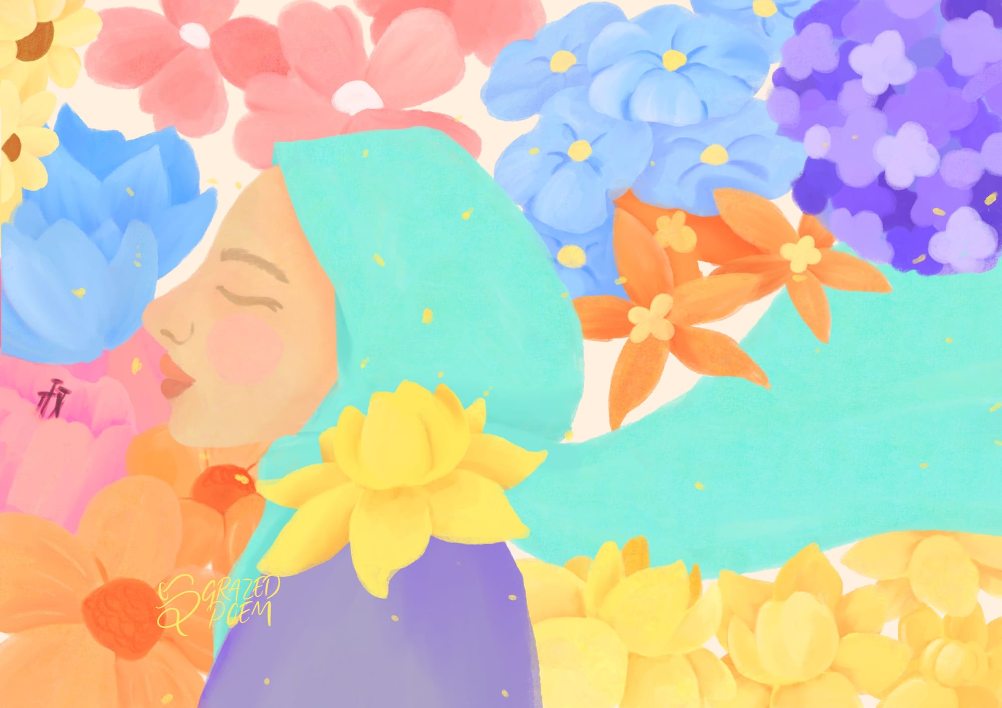 I am more so known as grazedpoem, the brand representing myself, on social media platforms. There are multiple layers to grazedpoem: I am an Illustrator, Creator, Graphic Designer and Streamer. Through grazedpoem, I aspire to spread good vibes and good reminders through my illustrations, streams, and work in general. The core message of my brand is encouraging self-expression, supporting others, and to constantly reflect on ourselves to be better artists and people of society.