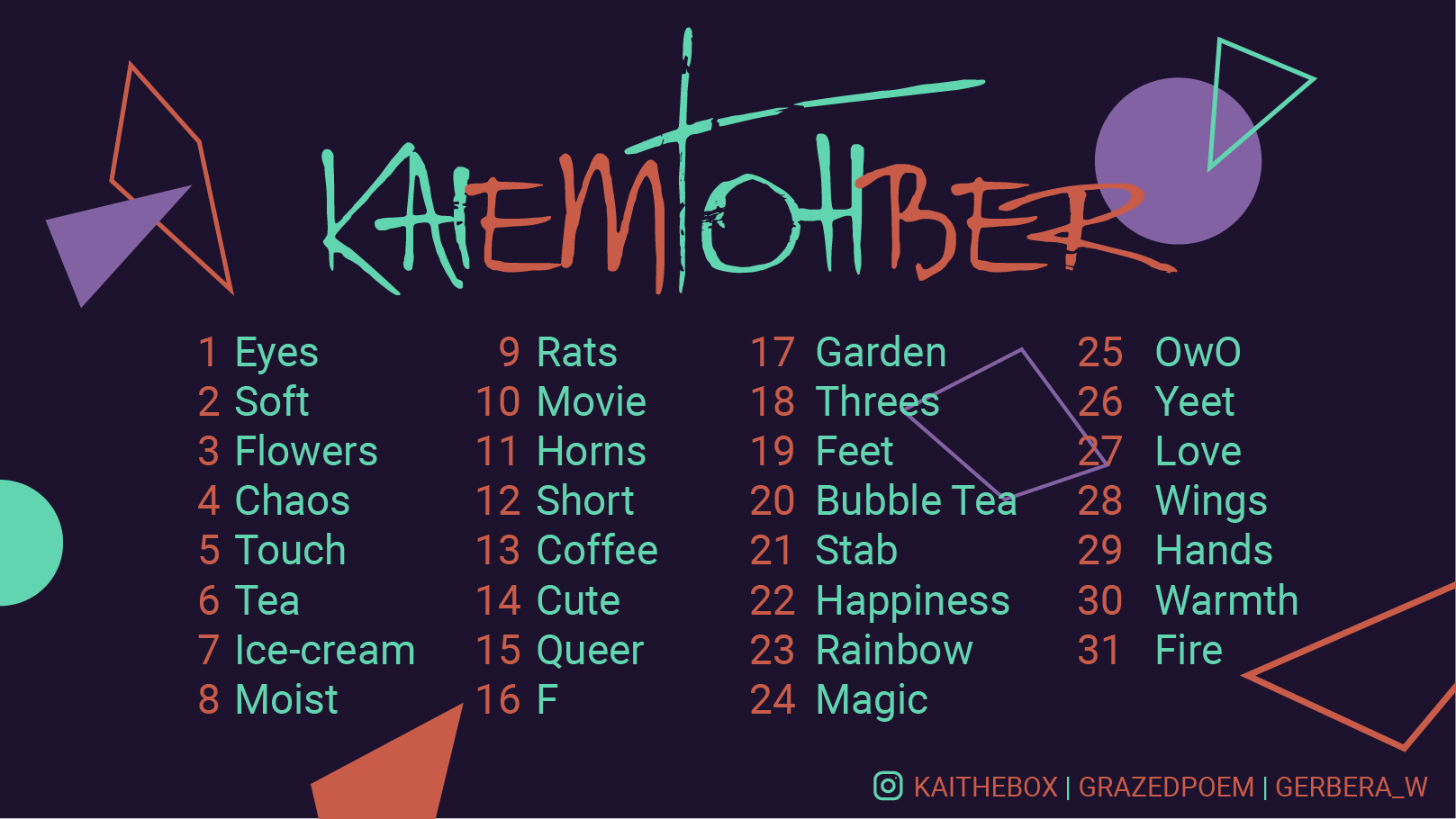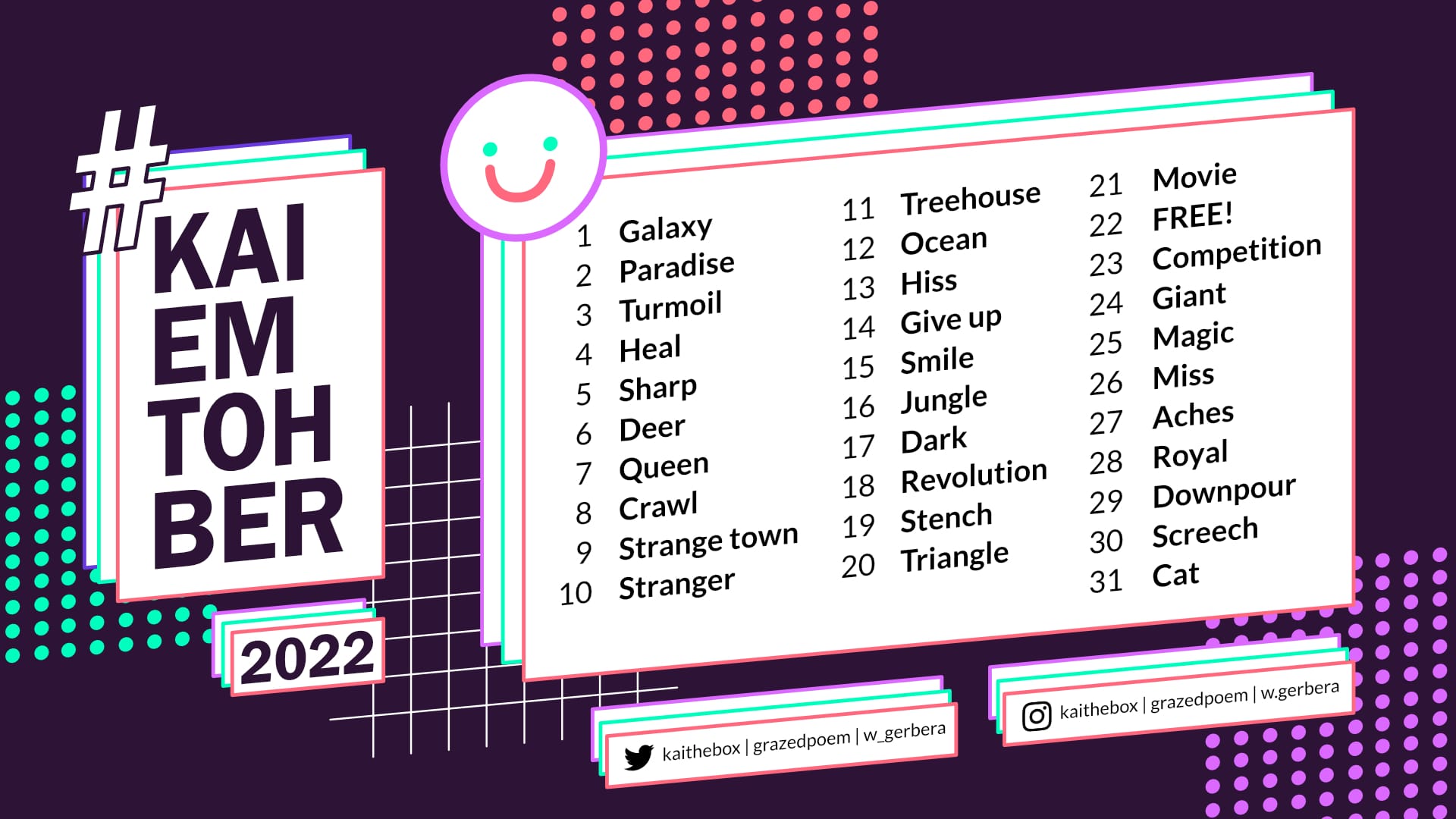 2022 KaiEmTohber promptlist carousel poster designed for Instagram