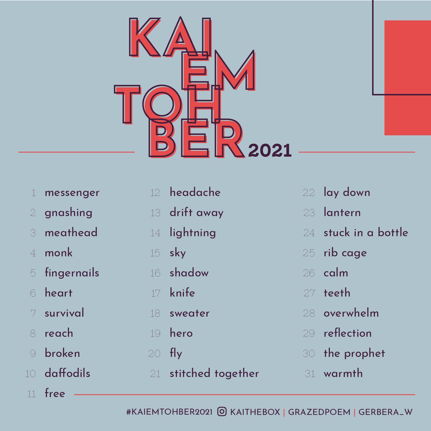 2021 KaiEmTohber promptlist carousel poster designed for Instagram