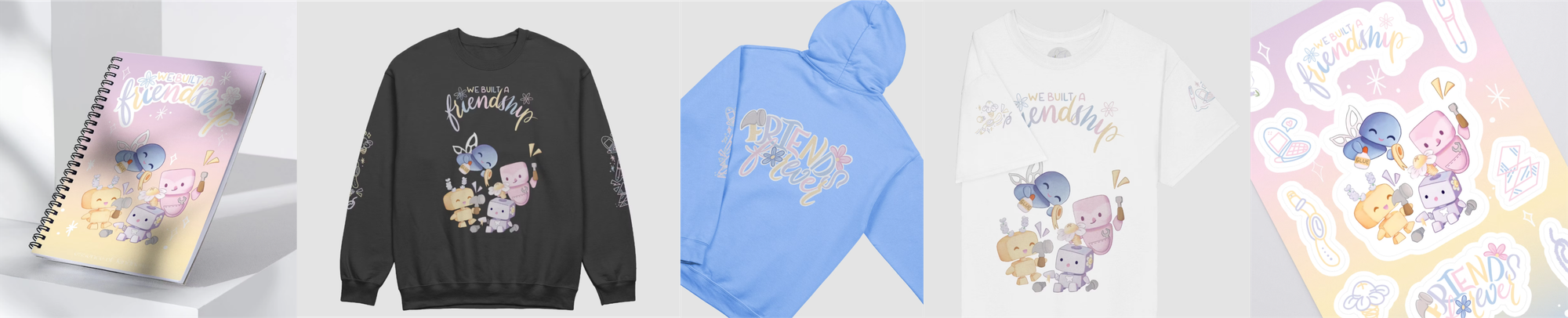 i wanted to represent the song "i built a friend" in some way for my first official merch drop because of how special it is to me. yeah, it's how i discovered his (alec's) music; but it's also special because of what the song is about. i advocate for kindness as well as suicide prevention. this originated because of the lives lost from bullying. even though the robot wasn't bullied, he was still left alone. kindness is much more than just not being mean to others. it is also inclusivity.